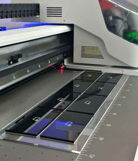 UV printing involves applying photopolymerizable ink, which is then cured using UV light. This method enables the creation of multi-color, durable prints on various surfaces. UV printing is fast, repeatable, and cost-effective even for small production quantities.
